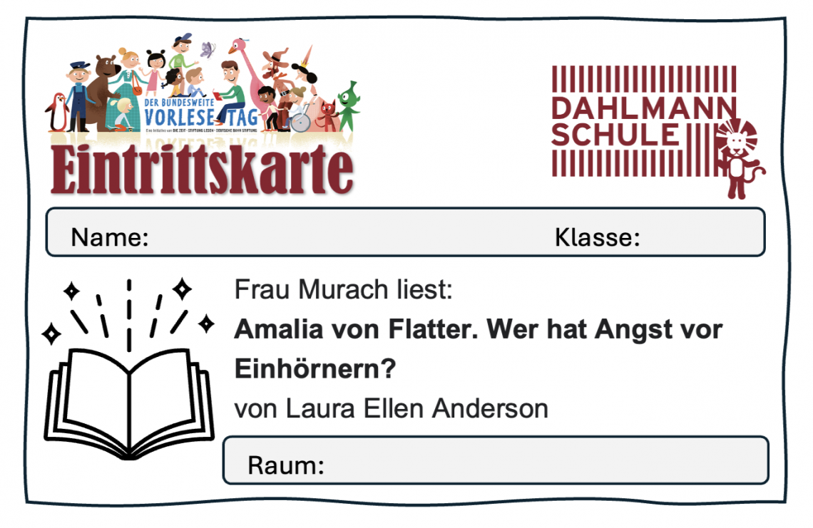 Liebe Eltern, liebe Kinder, am Montag, den 17. November 2025, findet an unserer Schule wieder ein besonderer Tag rund ums Lesen statt: der Dahlmannschul-Vorlesetag! Lesen öffnet Türen zu neuen Welten, weckt Fantasie und ist eine der wichtigsten Grundlagen für Bildung und Zukunftschancen. Mit unserem Vorlesetag möchten wir die Freude am Lesen und Zuhören wecken und […]